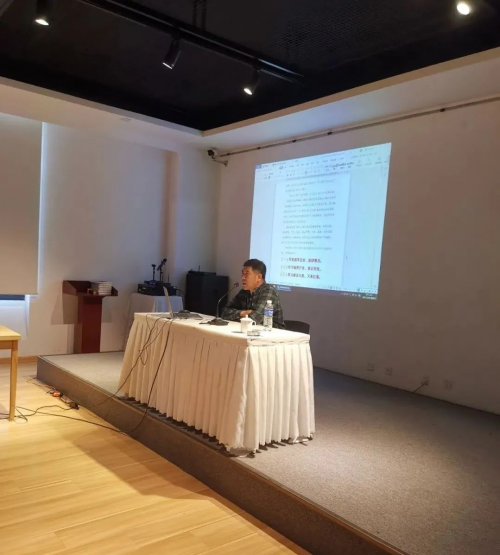 从展览作品中可以看出王春山有着深厚的传统功底,在对经典选择性获取后,又大胆地冲出经典,没有一味地摹仿和效法,而是尝试自我的感受。线条在起收笔、转折时频繁地折笔推进,化解了线条的僵硬和呆板,增加了节奏感、形式感、趣味性、观赏性。作品看似粗犷、猛烈点画,其实没有半点粗野或狂怪,相反有着一种仙气、一种蓬勃的力量正蓄势待发。 讲座现场