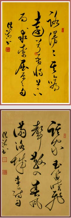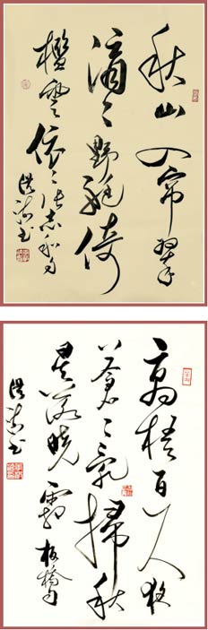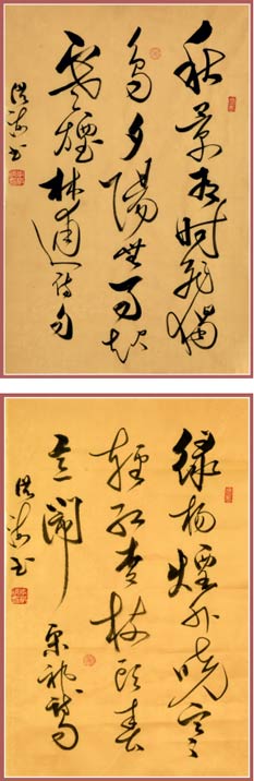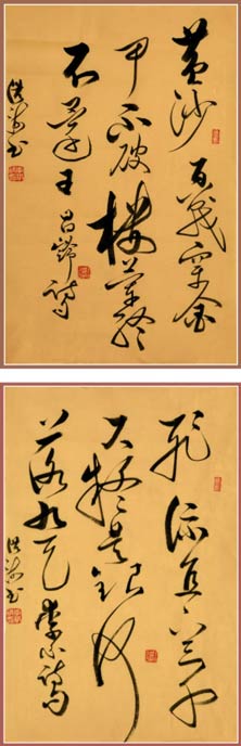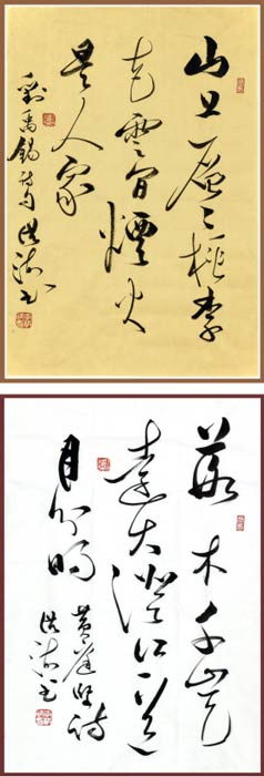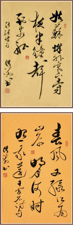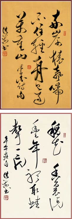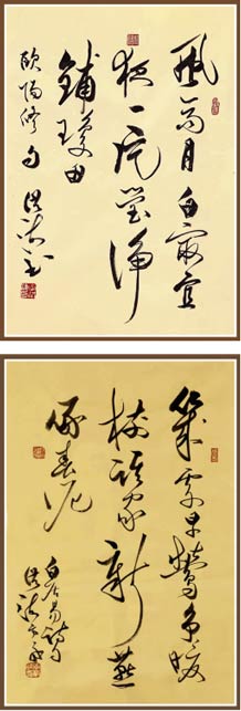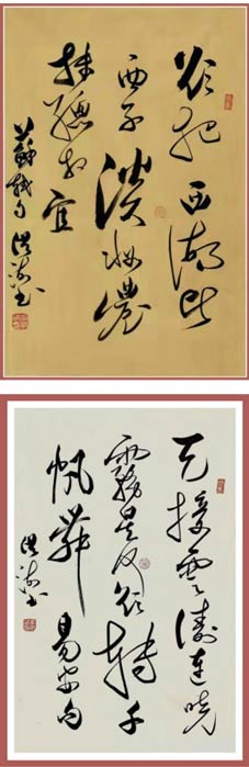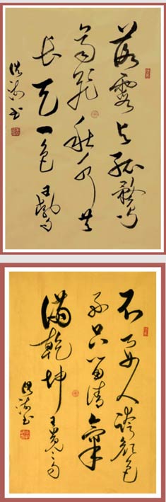 据了解,李洪海遵照启功先生教诲,重点对王羲之的手札,王献之的草书,怀素的自序帖,吸收了不少的妙处,这段时间看他的作品你会感到,一是用笔更加细腻丰富。点线内都有明显的折顿提按,线形棱角突出,块面效果强烈。二是点划加强了对比。方与圆,连与断,收与放,粗与细的对比都大大加强,增加了视觉美感。三是作品中的字符加强了排列组合,将通篇的单个字按照一定韵律合成大小、多少、长短不一的字群,再按照空间走势编排成章,增加了通篇的运动感。四是结构与章法注意了左右穿插避让,尤其在黑白空间处理上引入了中国画的金边银角概念,大胆留白,妥善处理题款和用印,通篇更加鲜活灵动,生机盎然。我们预祝李洪海先生在学书路上不断进取,百尺竿头更进一步。