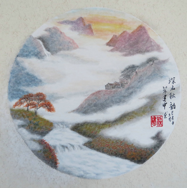 国画《深山秋韵》(圆心38x38cm)