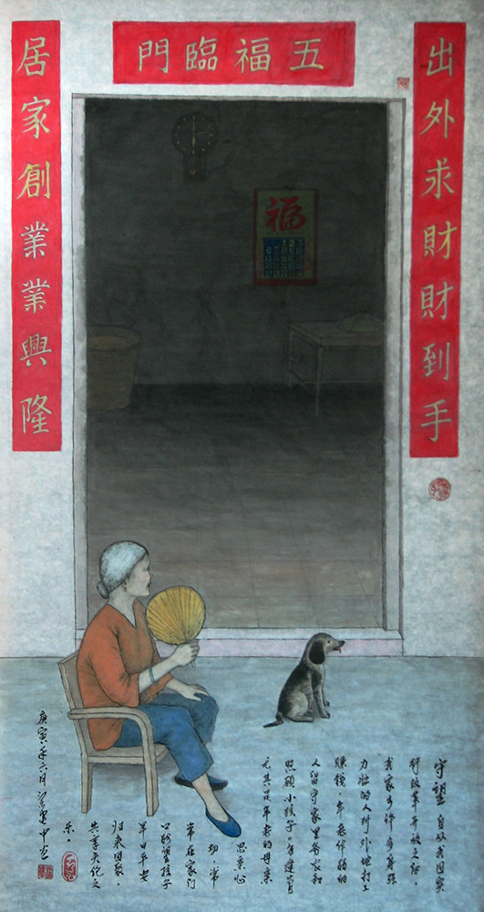 国画《守望》(66x132cm)