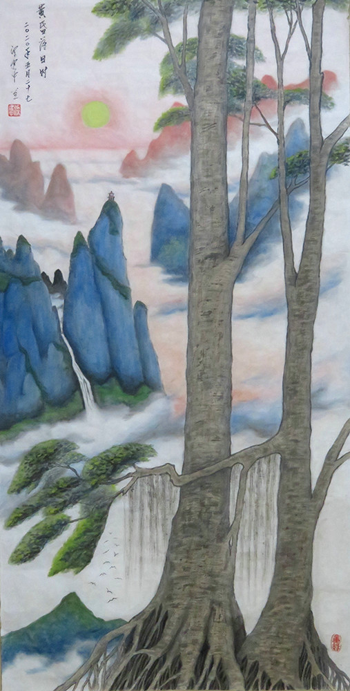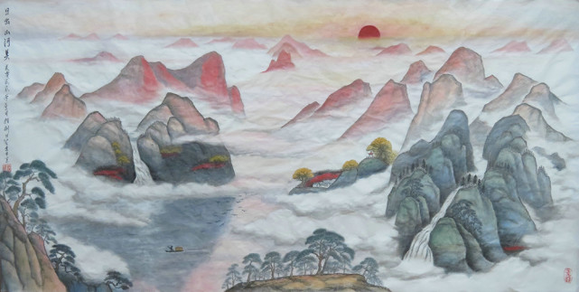 国画《日出山河美》(137x69cm)