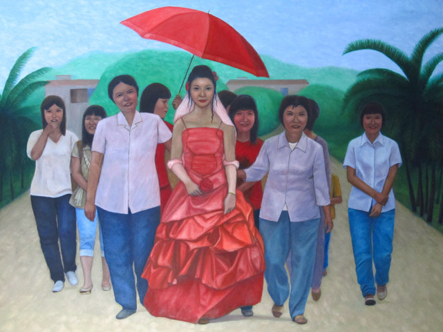 油画《喜送新娘》(130x94cm)