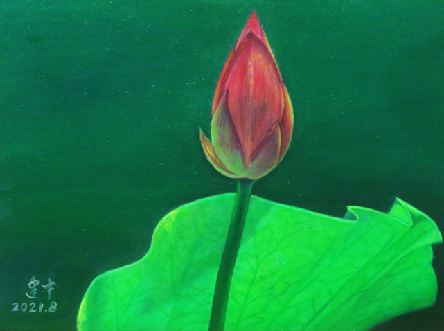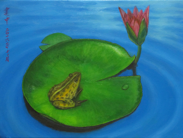 油画《莲花·蛙》(40x30cm)