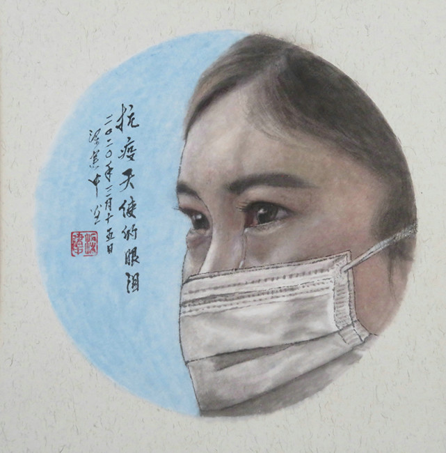 国画《抗疫天使的眼泪》(33x33cm)