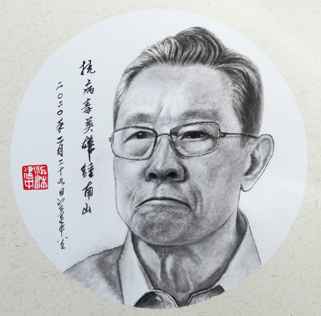 国画《抗病疾英雄钟南山》(33x33cm)