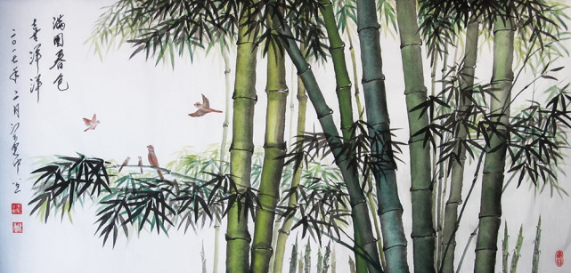 国画《满园春色喜洋洋》(66x138cm)