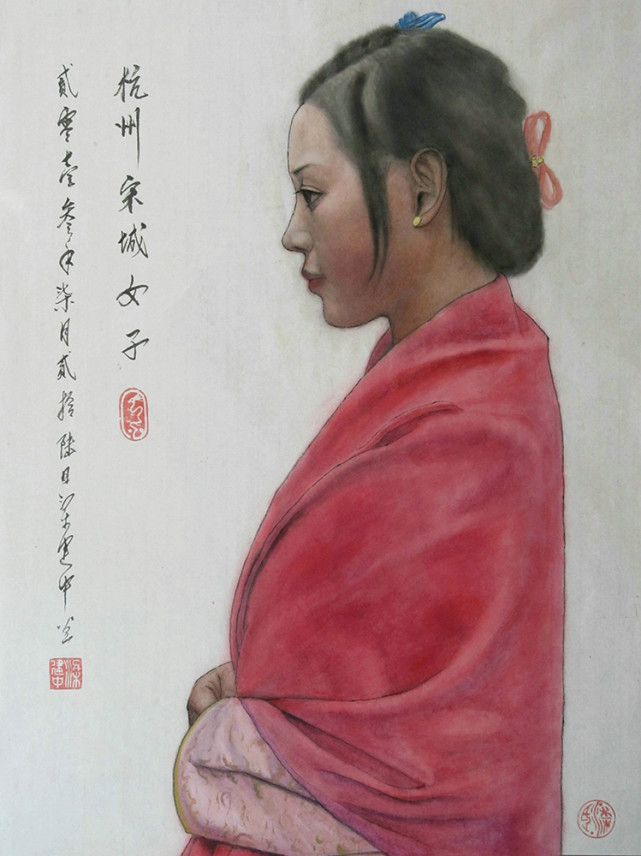 国画《杭州宋城女子》(50x65cm)