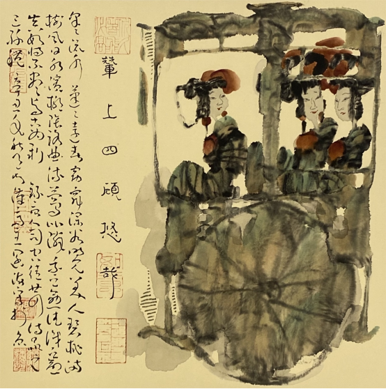 刘:你的比例比他们还要高一些,四六分的。四分画画六分写字,看得出来你在书法下的功夫。所以说你是在推陈出新,翻旧为新,以古为今,就是对中华民族传统文化的一种再消化。你的新汉画是以传统的笔墨为基础,有功夫。你把浓淡枯湿的变化,把墨气运用得非常之好,这是你一个很重要的创造。把墨拓转换为墨气,转化为破墨和冲墨。