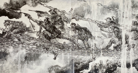 刘:你这种解释与处理很好,比较大胆精谨与辩证。特别是将造型意识和笔墨意识结合起来不易,看了《飞夺泸定桥》,我很感动,造型那么生动,深刻,细节的力量深化了主题和精神的表现,笔墨又是这么活脱,这在历史画中造型与笔墨取得高度一致是少有的,是一种力度。按照你积极进取的个性到了八十、九十岁以后肯定还有新的高度,因为艺术的最高境界还在于有法无法之间。这是时代赋予你的历史使命啊。 王:谢谢刘老师的期待。俗话讲:活到老,学到老,还要研究到老,还要进一步去提高自己,完善自己,艺术永无止境。我曾有句话叫作,“苍天不负我,我不负苍天”。谢谢! 二0二二年三月九日