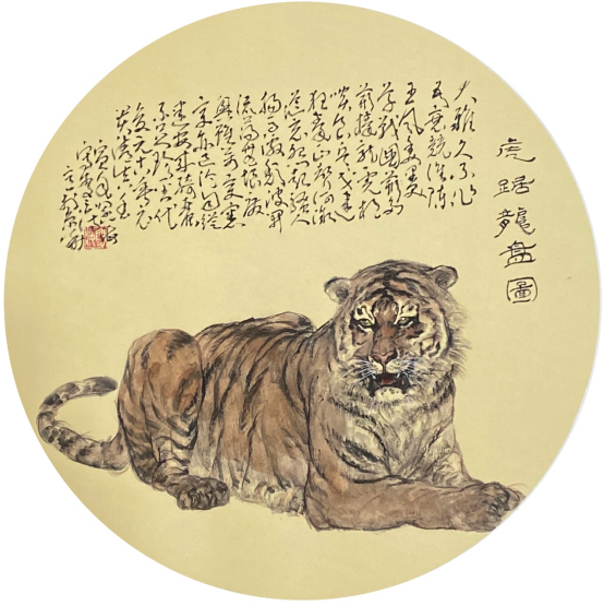刘:中国画有大器晚成的规律,这个规律,应该非常珍重它。“人文肇始,灵通太极,盘古开天,日月叠壁,垂立天象,山川焕绮,龙凤藻绘,虎豹凝姿。”这段四言诗很有学问,是你的《古汉画礼赞》第一章当中的一小段。可谓管中窥豹。这里我就想讨论你的个性问题,虎豹,雄强的个性和坚韧的意志统一在你的艺术里面。综合修养的修行很重要,你补多少就能产生多少的高度,你补的数量和你的艺术的高度是成正比的,所以最后就是画人格、画修养。