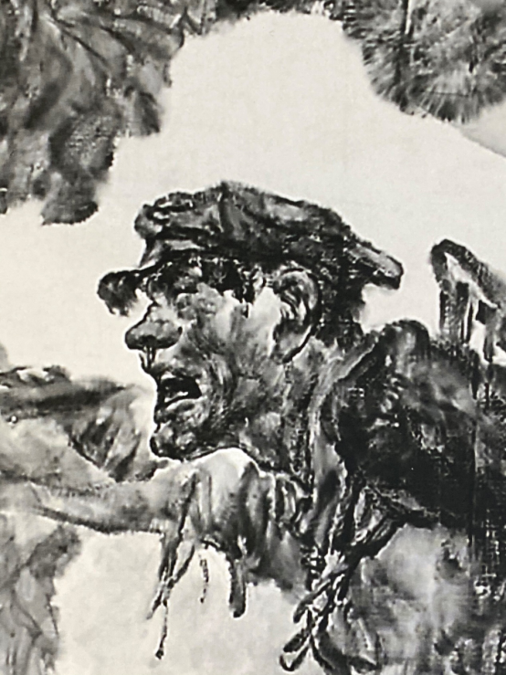 刘:你这个是形体意识和结构意识的力度、精神力度是统一的,这是个统一体。同时你打破了20世纪将西方素描与中国画笔墨相结合的这一思维定式。你的笔墨讲究通透、宁静、层次。你重视笔墨、重视书法是与启蒙老师有关吗?还是自己认识的?还是到了北京以后悟到的? 王:有一个人我要给你提出来,与他有关系,何海霞先生。何海霞先生到我们班讲课,他说笔墨要一笔用完,一笔用完了以后从浓墨、湿墨、淡墨、干墨、焦墨全都出来了,这真是个大家呀!当时好多人悟不透,也未必记住,好多人为了干墨、焦墨的效果就反复蹭笔,哪知道一笔用完是最自然的。何海霞先生这几句话点破了我,影响了我一辈子的笔墨运用。墨分五色,一笔用完不要随便调墨,不要把墨调的那么平,拍两下就够了。讲传统功底何海霞先生属于更胜一筹的大家。他从石涛而来的。