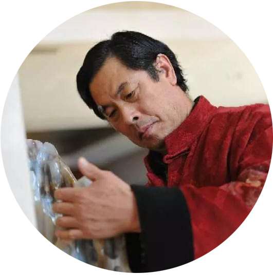 刘:应该说你对汉画像石的认识从那时候就开始了。黑白灰就在墙上。受到别人影响?还是与生俱来的? 王:是有影响的。一个就是我的姑父,姑父是乡村艺术家,早年他做过镜子铺,画镜子匾。我们山东的那个房间布置有一个特点,比如说到了西间房,当面是一个大镜子,大镜上面有个横匾,两边有竖匾,大镜上面一般都画成金龙玉凤啊,两边是鲤鱼窜荷花等民俗题材,我姑父画镜匾远近闻名,他以后又回到农村,周边村子要演戏的都让他画布景,什么龙虎相斗之类。以后他又画《沙家浜》这一类的,所以说他对我影响很大。另一个是我的初中的老师李万敏,他是美术老师。我有一次到县文化馆,我的老师不在,却有缘和袁大仪老师第一次见面。我老在那转转,他就问,孩子你等谁呀?我就说我等李万敏老师。你找他干什么?我找他学素描。
