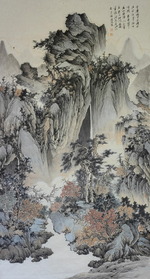 完全可以说,一个优秀的画家内心深处都有古典主义的倾向,张岩同样也是一位古典艺术的膜拜者。我们看他今天的绘画,古典主义的创作方法和精神指向,洋溢在他的画面上,有一种静美的、纯粹的、理想化的艺术境界,似曾相识而又久而不遇。他从《芥子园画谱》产生的年代而上溯,学习宋代绘画,荆浩、关仝的苍茫雄浑,董源、巨然的氤氲浩淼,他都用心体会过,心摹手追,师法学习,并游历太行左右,大江南北,师造化。