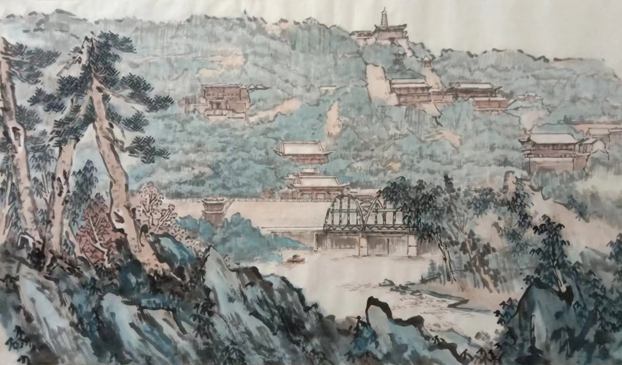 兰州画院资深画家李鼎元先生的新作《万里转运图》(下称《转运图》),在白塔山下金城关仿古建筑群的黄河铁桥博物馆里面世了。这是一幅高1.5米、宽3.7米的大画,命题而作。描绘了1907年5月至1909年2月二十几个月内,为修建黄河铁桥转运建材构件的往事。