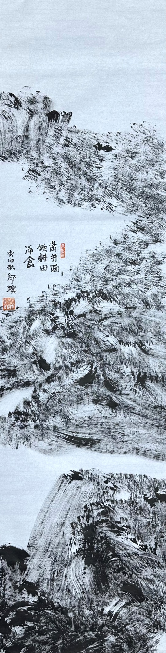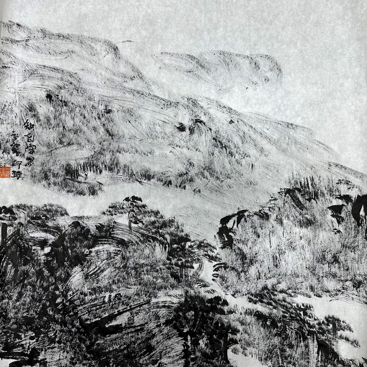 吴长江认为,在艺术创作过程中,国画家都脱离不了受西画、中国画或者书法的影响。“邵璞受西画最大的影响是注重画面的整体感,比如说黑白灰、空间、布局,既是中国传统的方式,但是整体布局上又强调整体感,我觉得这些影响、变化,都是为了画面的整体空间、造型。所以很难预测到他的焦墨艺术朝着中国画方向,空间越大,还是说再借鉴,也有可能走着走着更抽象,用几大块的黑白灰来处理他的画面布局。比如展览作品中山水构图上,有的作品上头有一块灰的或者浅灰的,将来变成了另外一种形,它的张力可更大,这都得画家探索,而且要大量地实践,在这方面的实践邵璞有他的真知灼见。