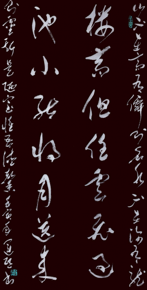 《楼高但任云飞过 池小能将月送来》138cm×69cm 山不在高,有仙则名。 水不在深,有龙则灵。 斯是陋室,惟吾德馨。 壬寅年运熙书