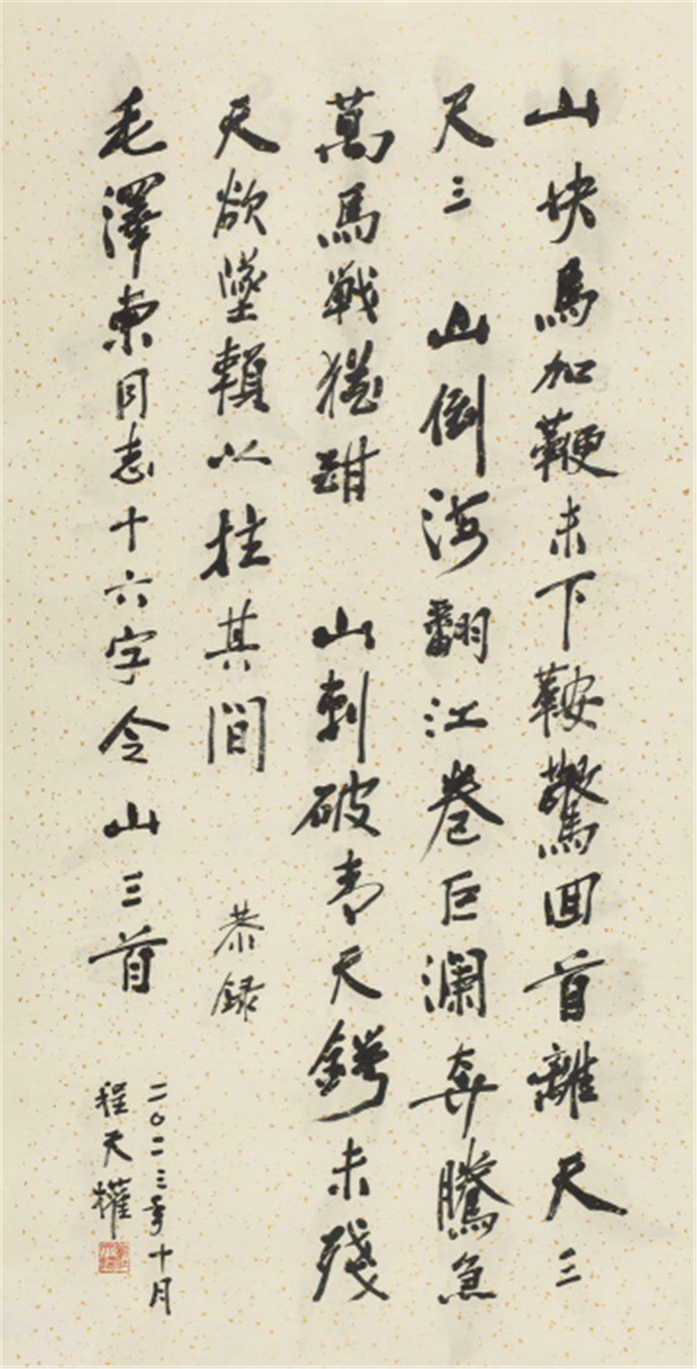 程天权《领导人同志十六字令·山三首》书法