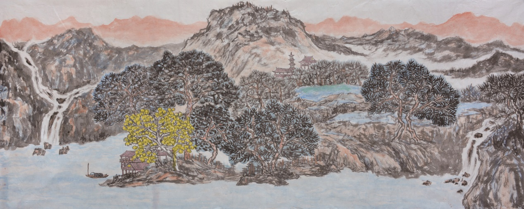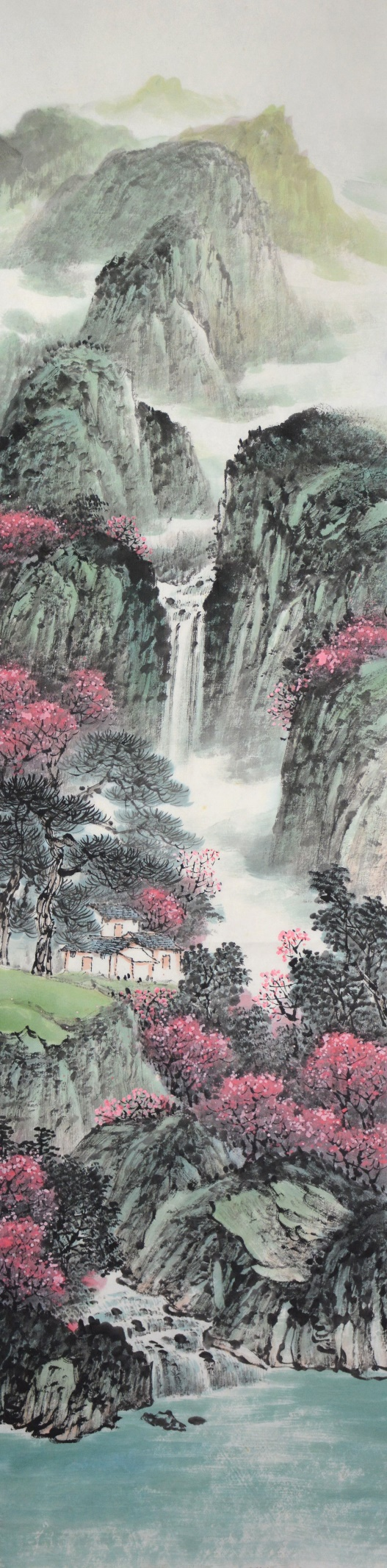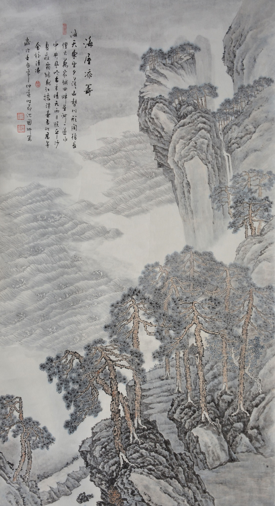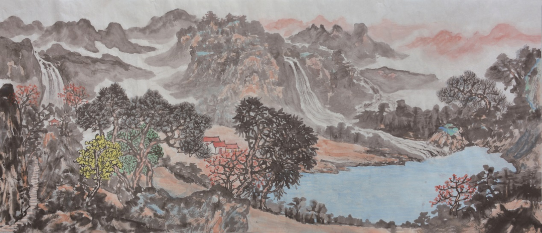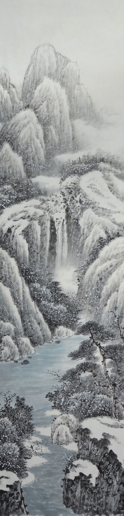 浑厚华滋 气势非凡 ——沈国卿山水画作品赏析 (一) 常言道“画如其人”,此言诚然不虚。沈国卿山水画的审美特质与画家本人的气质别无二致。其审美过程有三变:远观高邈轩昂、雍容大度;细品则温润淳和、闲适自在;深味又体悟到沉厚博大、坚毅恒久的力量深藏其间。让人感觉欣赏好画如品茗茶,醇厚澄澈,回甘绵长。老子曾在《道德经》中提出“道法自然”的哲学思想:宇宙天地间万事万物都遵循“道”的自然规律,然而“道”却“生而不有,为而不恃,长而不宰”,无目的、无意识地听任万物自然而然地发展着。 ![]() 《千里万里春潮起》70×180cm 沈国卿的山水画是那么自然而然,怡然自适,不矫情、不造作、不纠结,与“道法自然”思想高度契合。《道德经》又曰:“致虚极,守静笃”、“夫物芸芸,各复归其根。归根曰静,是谓复命”。静,本是生命哲学的至高境界。著名美学家朱光潜认为,静也是艺术的最高境界。沈国卿的山水画总是悠悠传递出一种静气,这静气象一个神奇的磁场,对观者有着莫名的吸引力。你会不知不觉地走入画境之中,体悟到静中有诗,静中有禅,静中有仁,静中有慧。 ![]() 《我看山脉远,新柏写炉峰》70×180cm 沈国卿用淡墨创作出的远山与近景之间的巧妙留白,既给人烟云缥缈之感,又有咫尺千里之妙,瀑布烟雾、帆船松柏、鸣泉幽谷、浮桥秋枫孤舟似隐似现,茅屋隐约千峰叠翠,崴嵬秀丽、绿树蓊郁,穿插繁密、意趣盎然,笔法遒劲苍厚凝重刚柔相济;墨法丰富表现形、质、动、势,与笔相辅相成。笔墨的神韵与笔、墨、色有直接关系,创作中强调和重视以墨为主以色为辅,色不可夺墨,青绿斑斓而愈见墨彩之腾发。创意风格特色有的以突出的主线来确定山之轮廓与凹凸;有的山石轮廓不作突出的主线条和刚硬方折的笔画,用笔圆曲柔浑;有的却用无数的点来表现,独特的视角多了几分灵动和意趣,赋予画境无限的延展,缥缈之间宛如野渡无人舟自横意境之美,构图和画面虚实的对比,风格洗炼,颇有任心纵逸提炼取舍之妙;构图上讲究气势,幽深高旷静穆峻拔,浑厚华滋气势雄壮;皴法勾线多带有孤线或斜直线,交叉组合然后沿皴的外轮廓或直线两端作点,层层积染情怀激越的恢弘构图,绘就色彩酣畅淋漓壮观多娇的大河大川,细腻写意笔触意境,水云之间,方显山的崇高、树的苍古、石的嶙峋、藤的缠绵、苔的润泽……远山不得连近山,远水不得连近水。 ![]() 《山中习静观朝槿,松下清斋折露葵》70×180cm “重返古典”,显然包含了太多与太复杂的现代精神内容与现代人的心灵渴望。中原画坛沈国卿正是在这一特定的文化背景中进行水墨山水创作的。值得深思的是,沈国卿是以青绿山水的现代画法而一举成名的。他以现代的构成、艳丽的色彩、气势恢宏的意境,在传统青绿山水与现代审美要求之间找到了契合点,碰撞出炫目的光焰。他的作品色彩鲜亮,金碧辉煌,意象丰富,气势磅礴,在古意中洋溢着一种强烈的时代气息,而他的意笔山水却独钟传统笔墨,追摹传统境界,探求古典美感。飞腾的笔势、灵动的墨色与蓬勃的气象纠缠于山川烟云之间,仿佛有一股灵气船运走水、摇山荡谷,带出满纸的笔走龙蛇,万千气象。一工一写,一色一墨,如此强烈的反差,或许可以解读印记在沈国卿山水画上的双重艺术个性和品格,体现了他生活和思想的状态。 ![]() 《山水横拖千里外,楼台高起五云中》70×180cm 在沈国卿的山水画作品中,墨色融合渗透变化极有润致,滋润处用湿墨醒提出用焦墨,运用线条和墨色的变化,以勾、皴、点、染,浓、淡、干、湿,阴、阳、向、背,虚、实、疏、密和留白等表现手法,来描绘物象与经营位置,树木房舍和船只皆用线勾,用线的粗细、轻重和深浅变化,由近及远愈见轻淡,竖划三寸当千仞之高,横墨数尺作百里之回,山水画创作不仅需要传统功力,需要师法自然,还需要美的冲动,有了美的冲动,才是激起强烈的创造欲,美的冲动来源于对山水美的观照,在山水美的观照中,发现山水自身的艺术性,山以水为血脉、以草木为毛发、以烟云为神彩,故山得水而活,得草木而华,得烟云而秀媚。由于风格、气象、修养的不同,这些符号的内蕴千差万别,但是,在通常情况下,他们的意义共识是一目了然的——或是超然的心绪传达,或是宁静的心灵栖息,或是精神的远游……从沈国卿的水墨山水中,这些意象符号都取自传统,特别是山石的勾勒、林木的点染以及整体意境的营造都不难看出,他对自然、对古典境界、对精神表达的一往情深。 ![]() 《青山绿水皆是赏》70×180cm 在看似传统的点、线、色、墨中,融入了他个人的审美感受与体验,尽管画面中处处流露出复古意境,却不乏清新隽永;尽管一派寂寥,却不乏轻松灵动;尽管平淡天真,却不乏厚重浑然。这一切构成了沈国卿水墨山水画的特点:作品无形因之以生,尺幅之间大气自然天人合一、物我为一、物之我化,大气秀美水色混融交响元素,从而产生一种别样的和谐情趣,韵者隐迹立形备仪不俗,艺术境界笔墨物象虚灵浑成,墨色增加笔重,笔运增添墨感,二者交融相辅相成,注重表现生命活力万物皆有灵性和谐共生,以运笔显其造型,运墨表其灵性,多用线条来增加图像的生命活力,实静却似动,栩栩而如生,笔法、墨法、章法、意境、肌理效果及敷彩,无不融汇在他的山水画中,可谓集中国画技法之大成;他运用散点透视法使层山