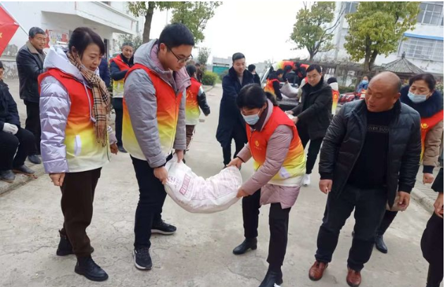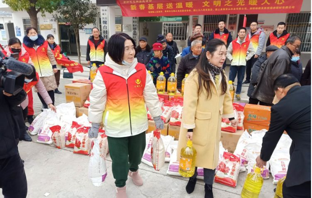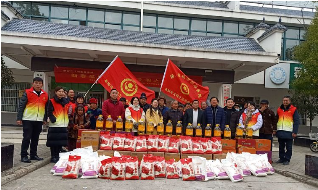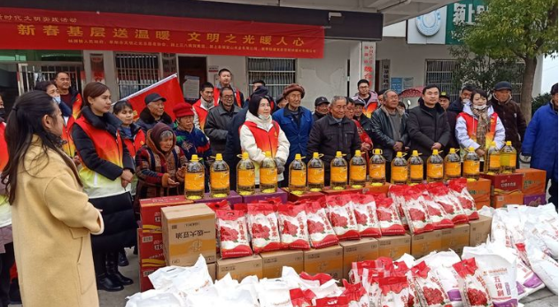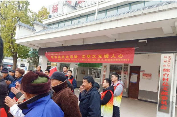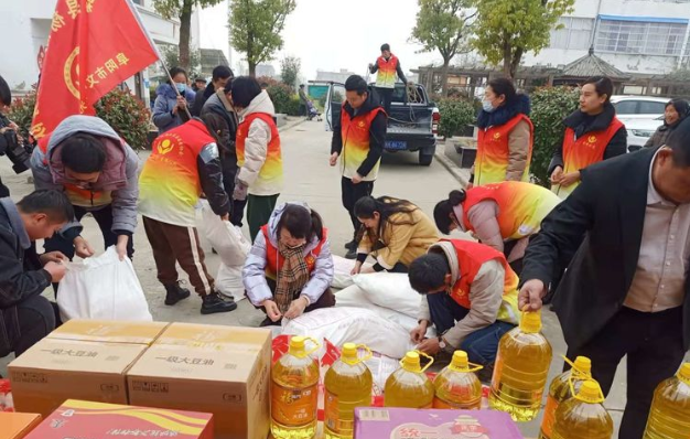 2022年1月16日,安徽阜阳市文明之光志愿者协会携颍上县三八商贸集团、颍上县锡安山米业有限公司、谢桥镇建发新型墙体建材有限公司、杨湖镇文明之光志愿者服务队到杨湖镇慰问陈巷村、魏台村40户脱贫后孤寡老人,为老人们送去40袋大米、40袋面粉、40桶食用油、40箱方便面等价值近万元的生活用品。