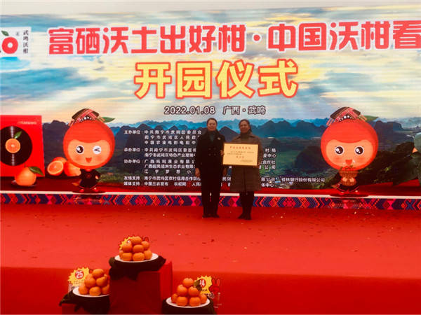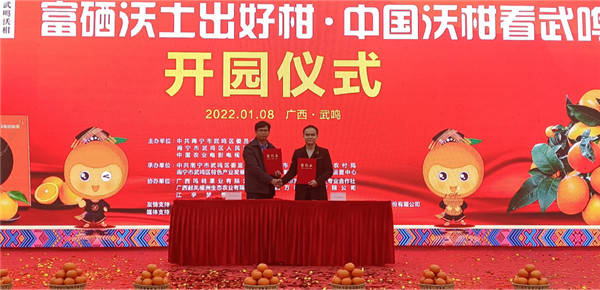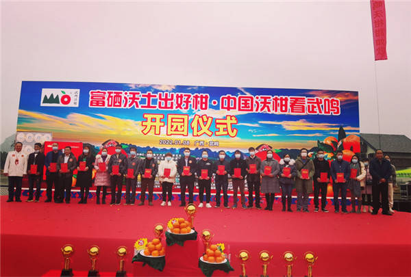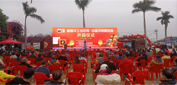 开园仪式现场 据武鸣区党委副书记、区长尹玉林介绍,武鸣区于2012年开始引进沃柑种植,预计2022年,武鸣沃柑投产面积45万亩以上,产量超150万吨,产值近100亿元,成为百亿元的水果大产业。