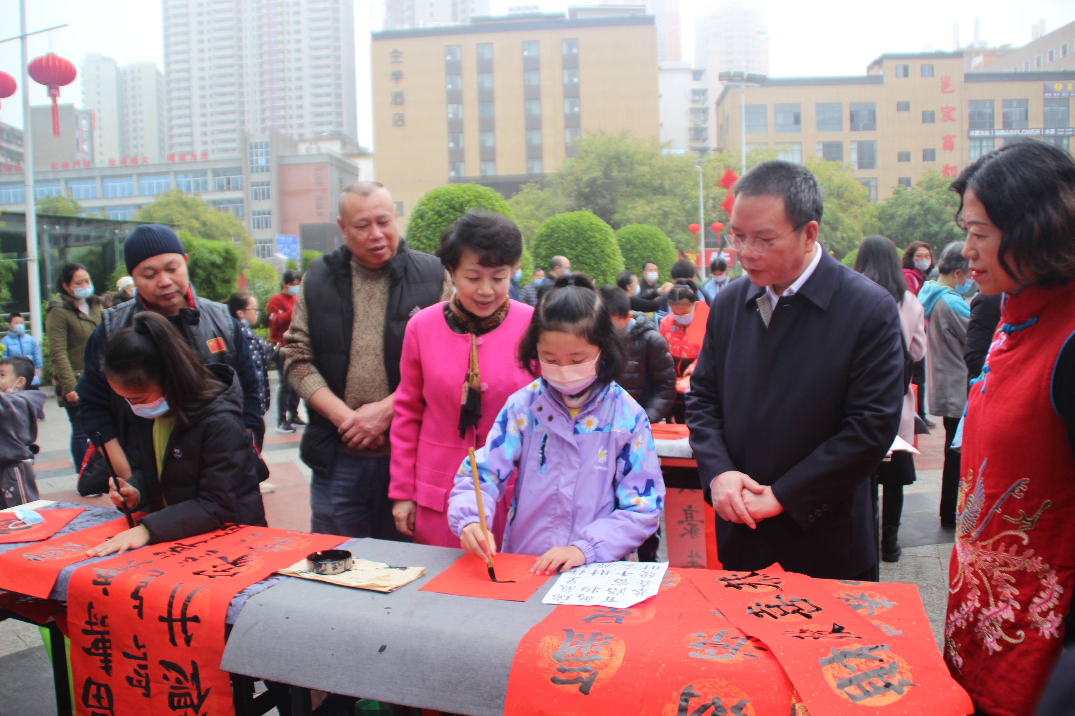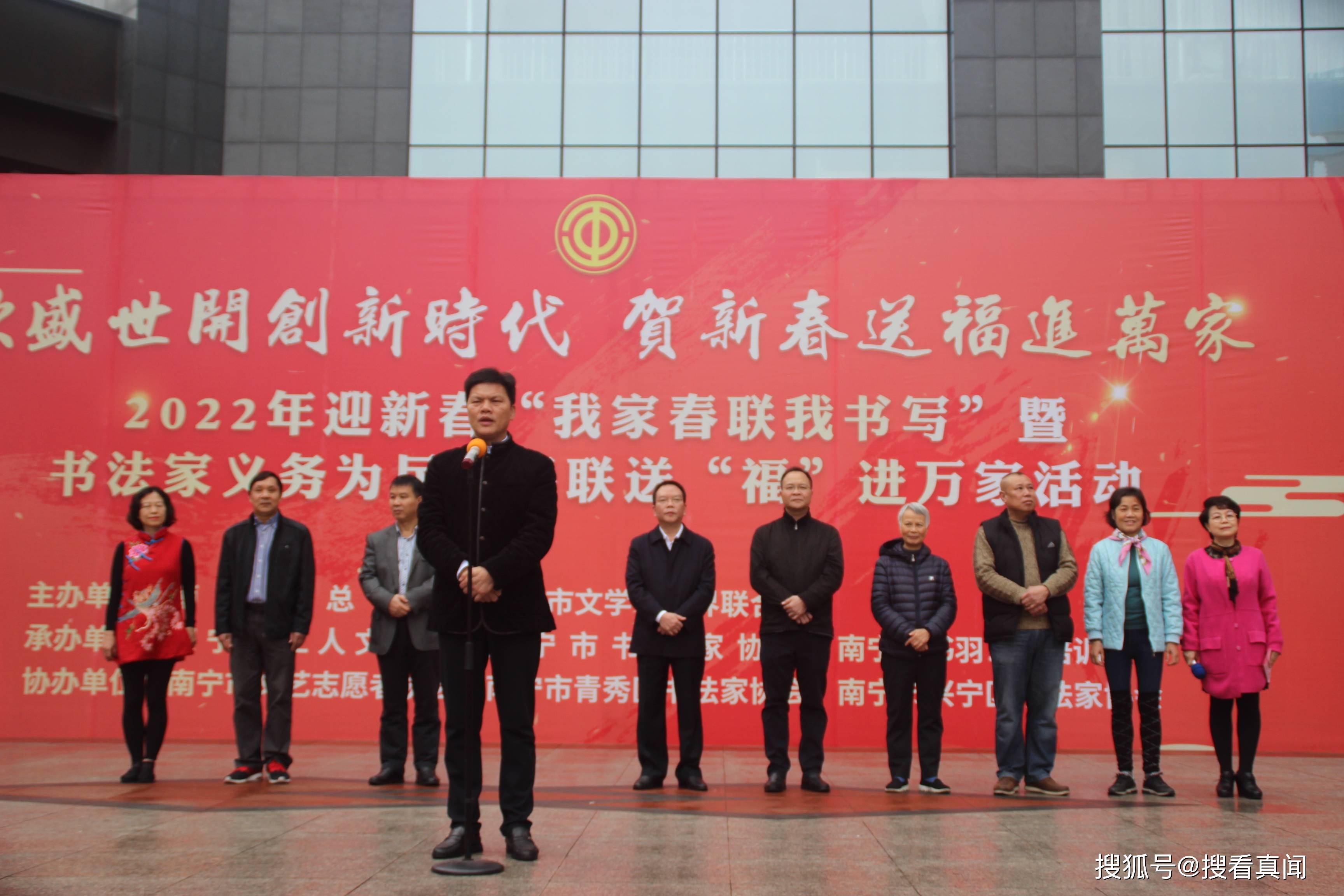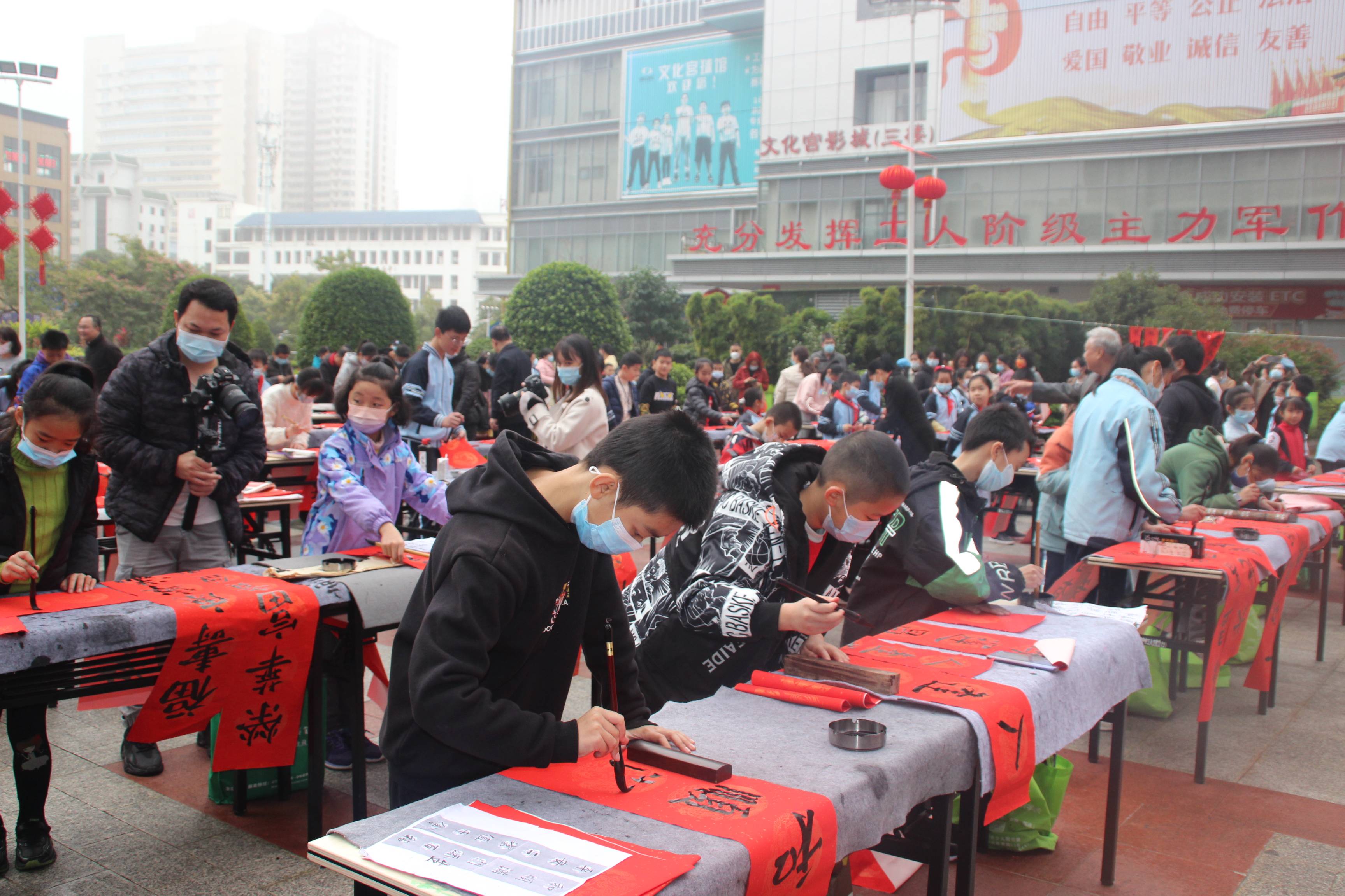 为了丰富广大市民和少年儿童的文化生活,营造健康、祥和、欢乐的节日氛围,1月23日上午,由南宁市总工会、南宁市文联主办,南宁市工人文化宫、南宁市书法家协会、南宁市书羽艺术培训学校共同承办的2022年迎新春“我家春联我书写”暨书法家义务为民写春联送“福”进万家活动在南宁市工人文化宫广场举行。