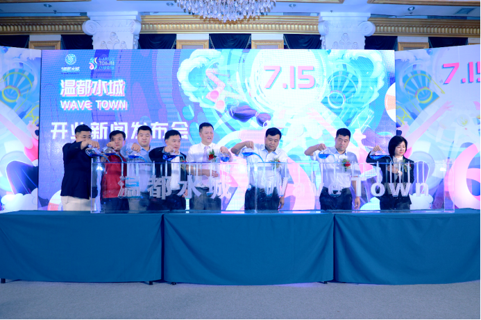 2021年7月12日,重建历时一年半之久的温都水城·WaveTown开园新闻发布会在湖湾酒店二层的金色大厅盛大举行。