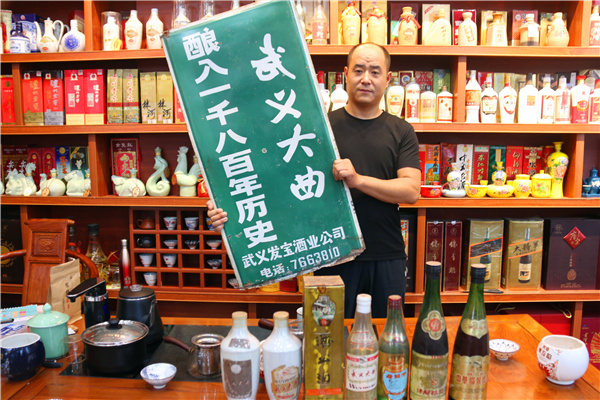 高国俊拿出一瓶仅剩三分之一了的武义大曲说,这是上世纪80年代生产的,当时他正在拆迁的鸣阳村“寻宝”,从一个以前的代售店里发现了这瓶酒,当场花了300元买了下来,现在这瓶酒已经值 1000元了。而一瓶更老款的武义大曲标签上既没标出酒精度、电话号码、招待标准,只注明“浙江省武义酒厂浙标酒0028”字样。高国俊说,这类品种的酒应该是上世纪80年代前生产的,现在的市场价是8000元到1万元一瓶,至今,他仅收集到两瓶。一款标签艳丽,1996年5月份的武义大曲酒精度只有28度,高国俊说,这应该是女仕用酒,也是很是看到。 高国俊又拿出一瓶中国壮酒说,这也是武义本地生产的养生酒。据一位曾经在武义酒厂工作过的老工人讲,现在社会上流行的某养生酒的配方,主要就是这种壮酒的配方。中华猕猴桃酒、特制桂花酒、济公酒……如果不是通过采访,亲眼所见,笔者打死也不相信武义曾经生产过这么多的瓶装酒。 3年前,一个永康人愿出35万元把高国俊当时收集的115瓶武义产的酒全部买走,但高国俊说:“你不是武义本地人,这些酒被你买走了,在武义有些酒可能就没有了,价格再高,也不卖。”