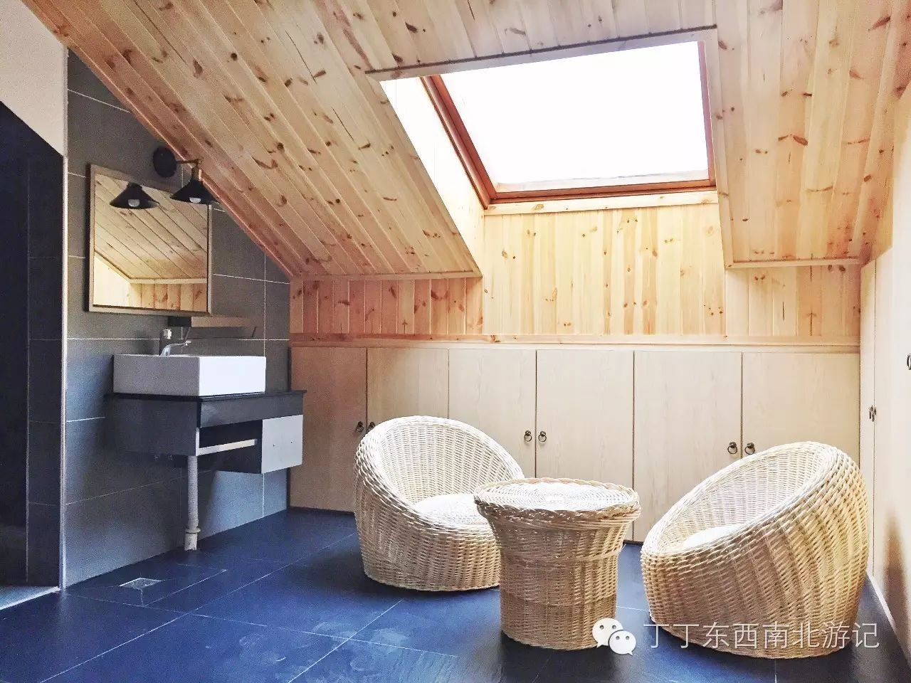 顶楼两间是“采溪”的亲子套间,适合两家人或者一家三口出行选择,当然,情侣的double dating 也是非常棒的。既有天窗又有浴缸,爬上屋顶,看星星一颗两颗三颗四颗连成线,再唱着你的歌,想想都浪漫到飘起。 当然,“采溪”之所以叫采溪,也少不了那么一点点文化底蕴,“采溪”里可以看到形形色色的书法、国画作品,男主人自己喜爱书法,写得一手好字,所以免不了有些收藏的小爱好。