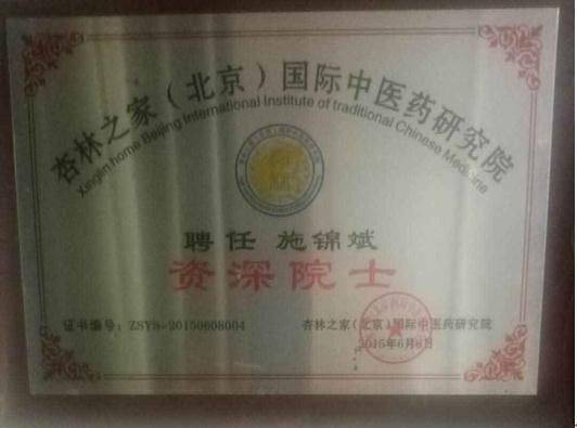 施锦斌中医师,出生于1956年,江苏人,2011年4月9日,特邀出席中医大师学术经验交流论坛,同时颁发中医大师荣誉称号。2011年6月被中华医学国际发展联合会颁发中国推拿按摩学科任命专家职称。2011年12月业绩被载入中国医师协会编辑部编纂的《华夏医魂》丛书。