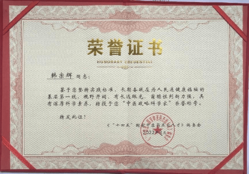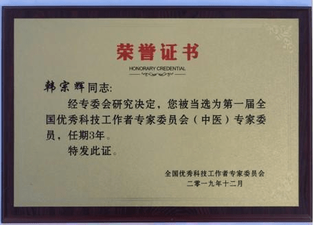 韩宗辉医生,一九七四年高中毕业后到一九八五年在石康镇中心小学教书,从一九八八年至一九九六年在家从事个体行业,还从一九九五年开始又一边学习和从事研究中医,专科研究和学习民间的传统医学和各种特色理疗方法。 二00四年起从事中医保健行业,经营南方医科大学(原第一军医大学)的中草药健康产品和广西大瑶山的中草药健康产品,几年来一直在南方医科大学(原第一军医大学)学习人体的中医保健和调理与经络理疗知识,又跟广西壮瑶两族的覃家华中医博士和北京汪杭玲专家以及广州蔡洪光经络专家学习中医调理和经络理疗。毕业于南方医科大学和国家教育部中史电教馆职业教育的《经络调理师》。 韩宗辉医生被国家授予:国医名师,国医功勋奖,医圣宝鼎医学贡献奖,“当代华佗”医师称号,中华特色优秀医师,优秀论文奖。中医康复治疗资深首席专家,中华医学国际发展联合会专家,中国中医科学院研究员,中华医学科技奖一等奖,当代百佳优秀名医,2015度科技人物奖,全国“传统中医百位名医’荣誉,中国科学家协会专家委员会第一届专家委员,中科清研终身客座教授.2017 年国家级科学家挂历荣誉,2012年至2017全国优秀科学家奖,中国科学家协会专家委员会第一批专家委员等。