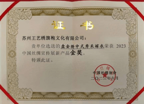 王成义秉承着一颗匠人之心,不断追求着对苏绣的传承和创新,于 2007 年创立了苏州王艺 绣旗袍文化有限公司,是一家集传承中国旗袍文化为使命从事高端定制旗袍、宋锦中装、设计、 销售为一体的专业定制机构。品牌善于以创新设计,全新解读罗、宋锦、香云纱等各类丝绸面料, 并结合苏绣工艺,以旗袍、秀禾等传统服饰为载体,展现苏绣工艺的匠心韵致与不同织造手法打造的丝绸产品的深厚底蕴。从满绘着吉祥如意图样与山水人家的浅色旗袍,到红色喜庆的齐地秀禾……都凝聚着江南绸都千年沉淀的文化性与艺术性。