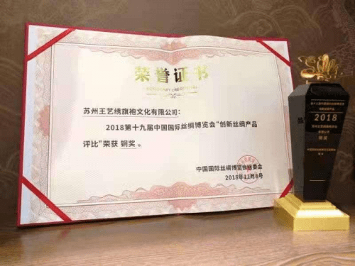 中国国际丝绸博览会:王艺绣品牌的获得两项金奖,我们深知获奖不是目的,是人们认可和鼓励,我们要更加努力,把中华传统工艺、服饰发杨光大。