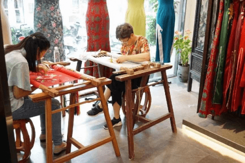 王艺绣每一件旗袍从量尺开始,根据每一位顾客的尺寸去打板,试完以后再做成品,制作期间每道工序都有严格的检查制度,每次严苛的检查,为最终的成品质量提供了保障,每一件成品都要经过几次修改,完美体现每个人的特点。但酒香也怕巷子深,即使有了优秀的工艺师傅和优秀的产品,消费市场在哪里?未来的发展在哪里?
