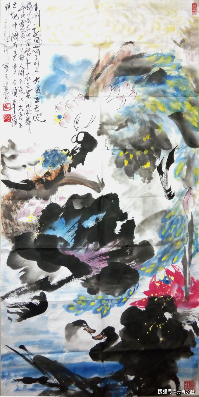 吴宝民先生是“中国作家协会会员”,这是我多年前知道的,而“中国书法家协会会员”,却是近年的事。他不仅作书、写字、画画,而且均成为“家”。他成功后面的辛苦,可想而知。近些年,我给他写过几篇文学及书画方面的评论。他的绘画,在我看来,值得称道的是其意境,其方式,其思维。我曾写过一篇叫做《神话、现实与想象的一体化实践》的文章,是就吴宝民先生的“喻象派”水墨画“龙凤荷”系列所作的评论和探讨。在这篇文章中,我首次提出“喻象派”的概念(喻象一词出自南朝文学家刘孝标注引《支遁传》)。我认为,中国画正处在“多元创新时代”,吴宝民先生是创新中的一员,他的探索十分有益,他以奇异思维见长(我俩曾深谈过一次)。我称之为“喻象派”,他这个集子里选用了不多几幅。吴先生有意识这样试验,首创,用自己的努力开创了这条新路。他的“龙凤荷”系列作品,是以中国古代图腾“龙”“凤”以及现实生活中的“荷”作为想象的基础,从“中国梦”的角度切入,融神话、现实与未来想象为一体,创作出的属于他“一个人的世界”。 吴宝民先生这次收入该集子里书画,还分别有书法、花鸟、人物、山水等。他的字如其人,柔中含刚,收放自如,个性见长,不失传统。他花鸟画中的鸡,尤其雄鸡,虽属中国传统独立画科,但他的画法实不多见,造型夸张,线条奔放有力,形神兼备,个性鲜明,墨韵不落俗套,独具魅力。观其鸡图,鸡爪健劲,鸡喙坚定,昂胸鸣啼,雄强豪放,目光如炬,冠如火焰;又如旗帜,很能换起希望,不愧其光明的使者;且寓大吉大利,吉祥美满,托物寄情,其“五德君子”之风跃然纸上,体现出了中国人特有的民族精神和文化艺术形式。他画的鸭,栩栩如生,连功带写,毛翎清新,顾盼传神:池塘清水涟涟,荷花妍妍,荷叶如盖,墨韵十足,三两只鸭浮动在荷花莲叶之间,偶尔“呷呷”几声,悠哉游哉。更可贵的还是他以物寄情:“不见故乡旧人面,只闻荷间鸭鸣池”,是他对故乡的眷恋,对乡亲友人的念想,是浓浓的乡愁。《故乡情怀》系列,《鸭唱荷花池》系列,连篇累牍,数百幅勾勒涂抹,无不情景交融,这是吴宝民先生对家乡的一草一木,一石一水地热爱。他的山水画,包括他的田园山水,诗中有画,画中有诗,诗书画融为一体,同样表达他对家乡对祖国的大好河山爱之深、情之切。2017年和2018两年来,他的《五德君子图》《龙凤荷》《鸭唱荷花池》《共享家园》等8幅作品,先后被中央电视台书画频道、人民日报海外版、中国多民族作家协会、中国作家书画院等组织单位选展并收藏。