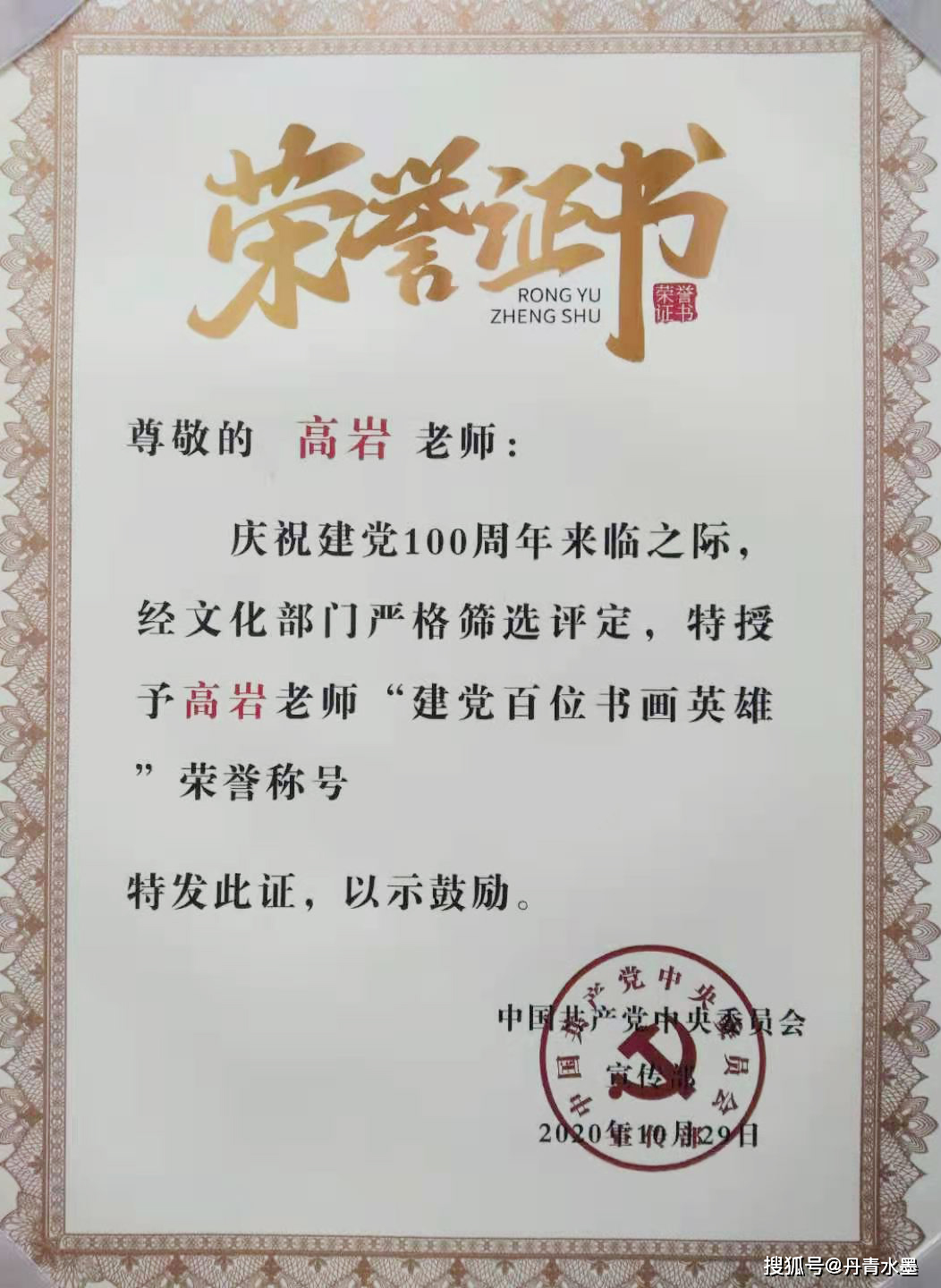 高岩 原名 ( 高占国),1954年生于河北省元氏县高家庄。1974年入伍新疆,自幼酷爱金石书画,兼擅摄影,中国书画函授大学学历。现为中国美术家协会会员,国家一级美术师,中国国画家协会会员,中国水墨画研究院研究员,中国国宾礼艺术家、法国国立高等美术学院客座教授、河北省新闻图片社特约摄影员,石家庄竹石轩书画院院长。作品多次参加国内外书画大赛,并荣获优秀奖、金奖、一等奖、特等奖、入编多部书画作品集。2015 年9 月作品经文化部严格筛选审定,授予“中国当代著名书画艺术名家”荣誉称号。2015 年 11月作品 经中国书法家协会、中国美术家协会及文化部评估研究,授予“华人艺术大师”荣誉称号。 2018 年7 月荣获国家非物质文化艺术传承奖“金奖”,并被授予 “国家非物质文化艺术传承人荣誉称号”。2018 年9 月特授予“世界非物质文化遗产功勋奖”并授予“世界非物质文化遗产传承人”荣誉称号。 2019年由北京林都书画研究院、中国艺术博物馆、中国书法家协 会、中国美术家协会、世界文艺家联合会共同策划编辑,岁月如歌《中国当代书画泰斗七大家》大型书画艺术特刊,为祖国 70华诞献礼 (入编《中国当代书画泰斗七大家》分别是:沈鹏、苏士澍、范迪安、何奇耶徒、吴为山、闫平、高岩) 。 2020年荣获“国际文艺巅峰成就奖”授予“世界当代十大顶级文艺大师”荣誉称号,并特邀入编《文艺之巅—世界当代文艺大师典藏》国际大型文艺巨著。