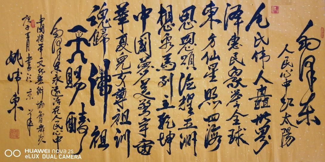 诸书皆成笔墨浓情,意气风发艺海畅游。姚卫东是一位有情怀,有视界,有胸襟的书法艺术家。书法线条在他的转捻下,华态朴茂,意气风发,是艺术也是情感,更是传颂文化的大手笔。所以他的书法创作,不是文人戏墨的小境界,而是理想挥洒的大功成。书有主旨,歌以盛世,让他的书法不但拥有艺术的高端品质,也成为与时代精神合流而趋的大道旗帜,引领时代,光彩夺目。 ——著名书画评论家 史峰