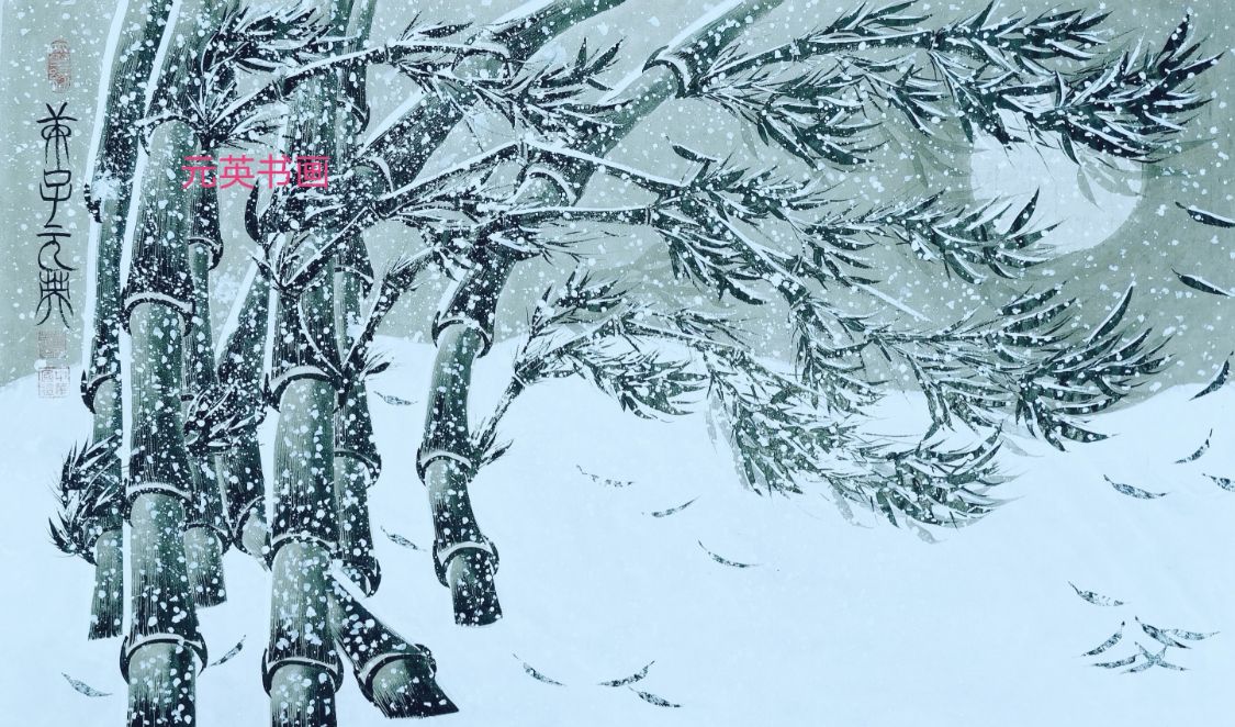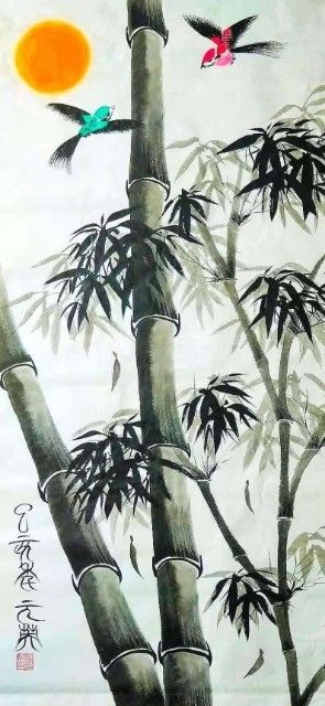 二、艺术风格 画竹即画人,“竹”是董元英女士心灵的迸发。中国人素来喜竹,喜欢它挺拔、飘逸的身姿,恬淡、高雅的情怀。董元英女士笔下的“竹”用其独特的绘画语言表现出竹子的清雅、刚正、苍劲、古朴、坚毅的形态。以激情的状态,情感的表露,关切自然,呈现出被生命意识包涵与容纳的主体景观,并以内在情境的延伸与拓展,表现出一个肃重内敛、宁静淡泊的精神世界。董元英女士在画面构图上布局饱满,色彩相宜,立体感强,乘古而不泥古,构思精妙,典雅朴真中透出高贵之美。她将竹的自然灵性与内心世界所要表达的情感交汇出理想的色调,使画面既充实又不失空灵,既得传统笔墨之精华,又创现代笔墨之新意,通过这些情感特质提炼出高雅而深远的意境,让人们看到的是充满温情的平和景象。欣赏董元英女士的竹子,让人仿佛置身竹林,映入眼帘的是一片青翠的绿色,一株株翠竹高耸挺拔,顶天立地,让观者的心灵获得美好、祥和的心境。对于整体布局的把控和细节的描摹,她遵循了自然与写意相互统一,意在营造一种充满清气、古意的情调和气氛。以技入道,所以她的作品清雅秀丽、境界深远,透露出她独具特色的审美情趣。