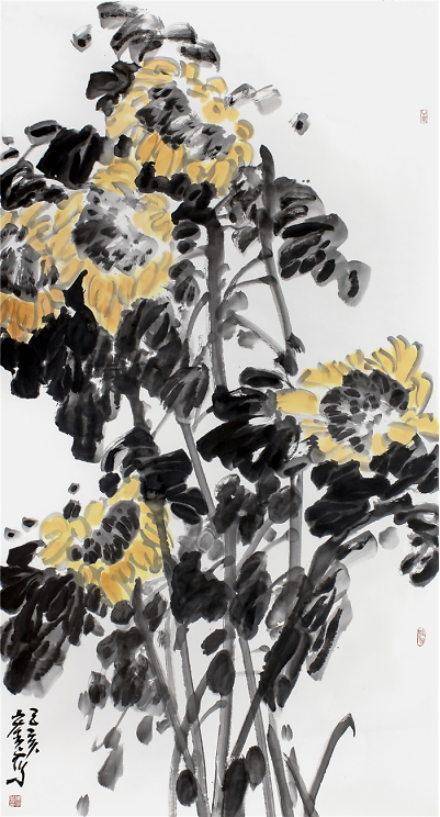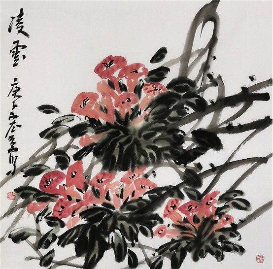 陈宏光对徐渭可谓顶礼膜拜,这不仅仅是因为徐渭是中国写意花鸟画的开山鼻祖,更重要的是他的倔强与刚强。所以,陈宏光笔下的花鸟作品豪放泼辣,水墨淋漓,一挥而就,但求神和,不求形似。他那种热烈、豪放、沉雄而带霸悍的大写意画风格,深得徐渭的传世影响。 空间、感觉和节奏。这是绘画的根本属性,离开这三条,绘画就不存在了。但是绘画又不止于此,他要有其审美的内涵,一是抒写心中之意趣,二是要有创造性,三是具有高超的技艺。