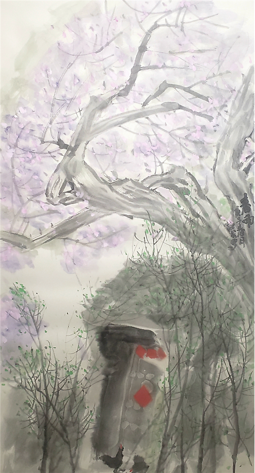 他深爱自己的家乡,总是想方设法以多种语言多种形式表现家乡的美景,抒发自己挥之不去的乡情、乡恋。因此他的作品,无论是国画还是西画都充溢着浓浓的思乡情结,散发着泥土的芳香,这应该和他的生活经历和艺术经历有关,也和他的性格相联系。