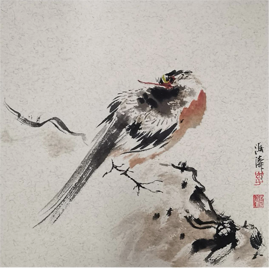 李海涛,豫东周口太康人氏!二十年前在朋友处有幸得识。因先睹其画作,颇为敬佩其作品之精妙!后相识之日,观其体貌,稍有诧异,观当今之画坛诸君,多有长袍、美髯、光头、发辫之相。标新立异,独具风采,艺术范十足!而海涛短发俊目、清新健朗,西服衬衫笔挺帅气。初见时浅笑少语,眼露真诚,一派儒雅之气!谦谦有君子之风!