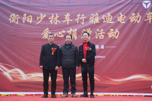 2月7日,衡阳少林车行为衡阳最美乡村教师、十孔竖笛演奏家、口哨音乐世界纪录创造者——衡阳县井头镇大云中学王志生(艺名:王之声)老师发起的《衡阳首届乡村达人秀》大型公益活动捐献爱心款1万元和6台单价为4188元的最新款雅迪电动车!