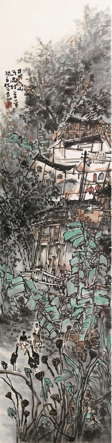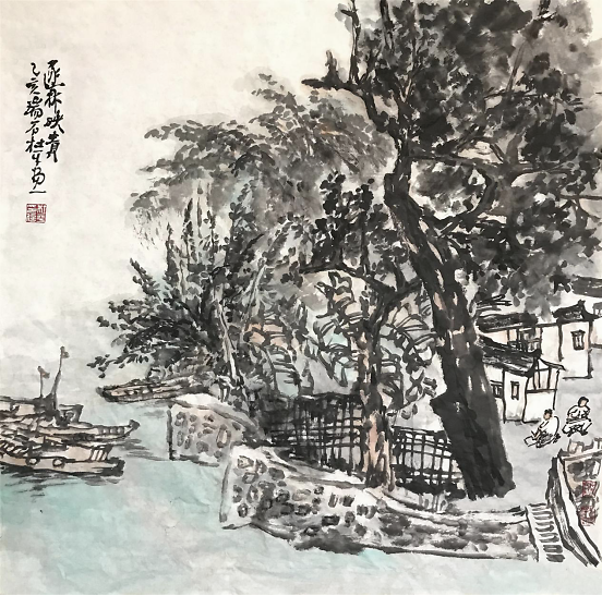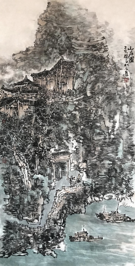 “江流有声,断崖千尺,山高月小,水落石出,曾日月之几何,而江山不可复识矣。”这是苏轼《后赤壁赋》中的一段描写,绘声绘色,有景有情。读杜平老师的山水画《云梦故里》,让人进入同样的情景交融的妙境。杜平将从这情景交融的文字描绘中得来的深刻感受,恰到好处地融入笔墨之中,构造出新的意境。这里面既包含作者深刻的诗意感受,也是作者朴素率真的思想感情、精神气质和艺术修养的体现。 自然是人类生存之本,亦是中国传统艺术之源,更是中国山水画之根。杜平认为,自然在山水画中有着独特的地位。山水画自始至终都离不开自然,没有自然就没有山水画。中国山水画是以自然山水为基本素材和题材,并以自然山水为主要审美对象的绘画艺术。山水画通过特定的形象符号,表现的是画家的心性和独立的人格,表现的是人与自然的关系。山水画家应该从“心灵法则”出发,回归自然,到自然中去体味自然,正确处理人与自然的对应关系,如天人关系、物我关系、心物关系。简单地说,山水画是“天人合一”哲学思想的艺术观照。