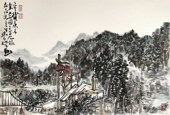 《云梦山写生》系列,是杜平近年来倾注了大量心血的写生力作。画家一改前人牛毛、斧劈、铁线、米点等山石技法,以别开生面、肆意游走的皴、擦、点、染,控制得恰到好处的洇晕,以及体现时代风貌的色彩,绘就出一派笔墨迷蒙、气韵流动的梦中家园。但这气韵流动的梦中家园,却让观者的心沉静、静谧,有融入自然的超脱。《云梦山写生》系列作品令人耳目一新,其笔墨、意境、神韵体现了画家既传统又新颖的画风追求。