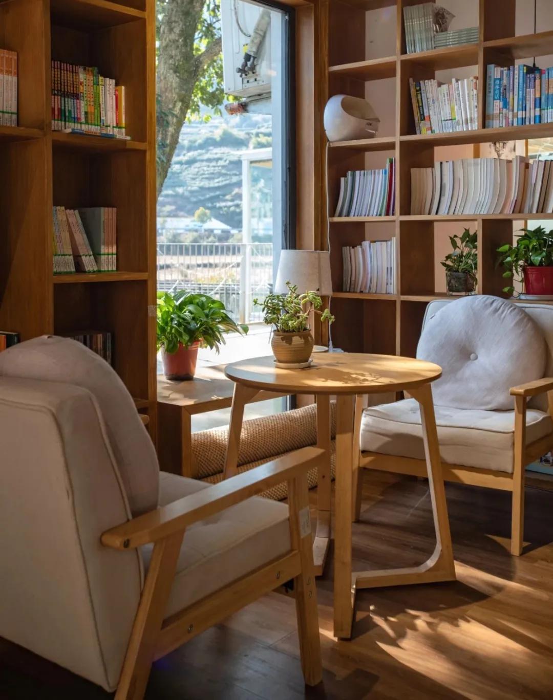 皆山书馆,坐落在古树林旁边。馆内有书籍、茶饮、咖啡、精致的下午茶点心等。书馆里的阳光房镶嵌在太极溪流上,与周边的稻田、远处的山峰一起描绘成了美丽的画卷,是俞源景区的网红打卡点之一。一束束温暖的阳光洒落进房子里,让您享受穿梭在乡村里雅致的生活。