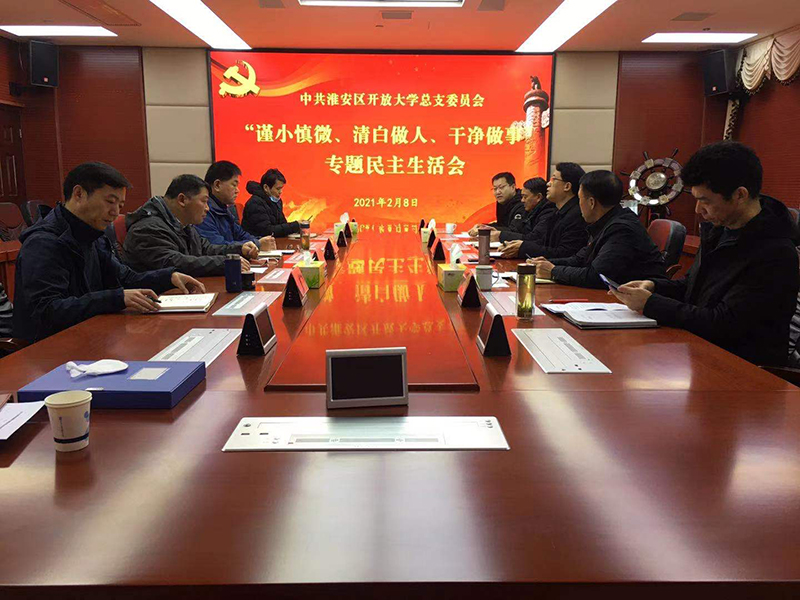 为加强党总支从严治党主体责任,构建学校良好政治生态,2月8日,淮安区开放大学党总支组织召开了专题民主生活会。会议由党总支书记贾朝东主持,全体总支委员参加会议,副校长徐建波列席会议。