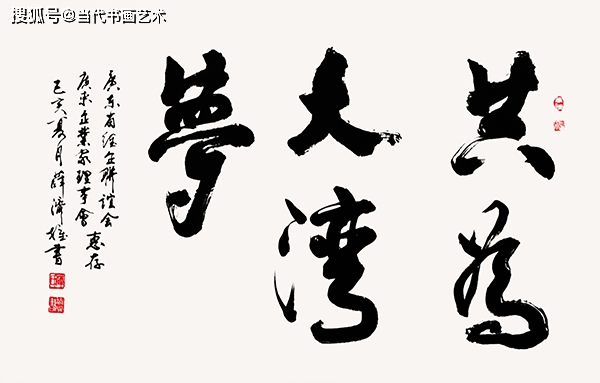 作品品评: 以书法为友,清风出袖运笔生花,达雅共赏之境 薛济权老师的一笔成龙,其结构,笔画十分严谨,雍容大气,气势磅礴。中国梦亦是正气凛然,内涵深远,在字体结构方面深下功夫,将中国梦的文化主旨用书法凸显出来,赋予了其新时代新的使命,同时将薛济权老师的人格魅力通过其博大的精深文化内涵体现出来。 ——著名书法评论家 王琦 2020年元月14日