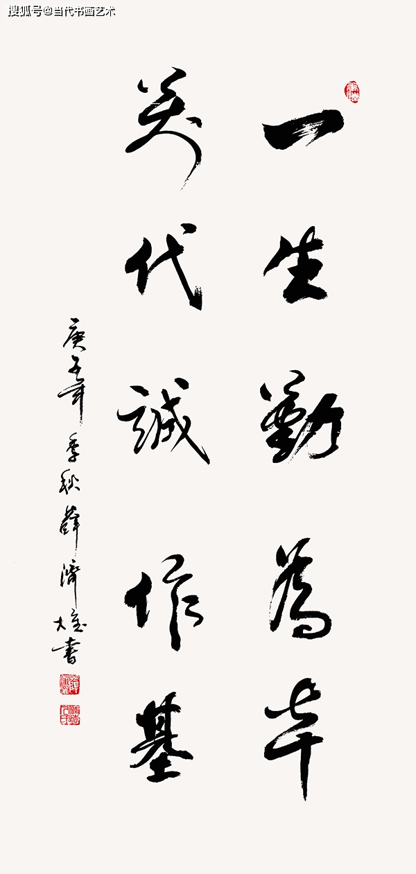 书情画意天工技 翰墨驰名文化功——记著名书法家薛济权 书法是极为讲究高古的一门艺术。所谓高古,在当下许多人的书法概念里,至多是口头上的言说,并不是卓劲的追及。唯有当代著名书法家薛济权先生的书法磨砺,从理论和实践两个层面同功并进,径入翰墨高古的正宗境界,成为碑帖修上品,书法写一流的大手笔。所以,站在他的书法作品面前仰观,时而秦时方圆,时而汉时雄朴,唐法严谨,宋意风流,凡属书法的高古品格,无一而遗!纵观其书,诸书皆成,恰如目游翰墨流源三千年,高古气度,精美灼辉,美不胜收! 他是如何走进高古境界,收获了书法修养的主流功成呢?当然是笔墨追碑帖,寒暑无休歇的汗水付出。书法一门得实力,除了执着修炼,别无他路,所以书圣墨染池河,笔秃积山。薛济权先生读帖、临帖、悟帖,心与帖通,行与帖贯,经由数十年的心追手临,以二王书法的魏晋神工为核心,以欧、颜、柳、赵楷书四家为基石,构建起自己书法形通历史,韵生文化的书法体系,经由碑帖精华尽得的汲取,让书法一得筋骨,又得血脉,性灵十足,境界万千,所以挥笔恣情,无一笔而形呆,无点墨而失韵,完具笔墨的极佳性状,成为执笔写意线条,堪称龙飞凤舞的实力派。 他的书法,除了有极尽高古的形韵品格,也不会缺少锐意进取的创建风采。他全面传承二王行草的快意潇洒,但是绝对不当抄书之匠,不做书法圣贤的奴仆,而是善于与高古的书法品质进行平等对话,做时代背景下的文化交流,在书法的创作过程中注入时代审美的价值观,让书法如旧桩照春阳,多萌时代青,非常好地拿捏住了书法创新与书法传统的顾应关系,传承不失根节,创新不写江湖,用功力和智慧的合成动能,创设草书一笔成龙的独特风采,把中华龙韵与龙形,用笔墨劲功表现得性灵透彻,笔能抒情,书有画意,似乎是天工所为的笔墨神奇。 明代人写书法,有徐渭天下无物非草书的创建,当代人写书法,则有薛济权一笔成龙创品牌的文化功成!他的一笔龙书,是草书境界得大成的标志。一笔写龙,是翰墨传统积淀之后的厚积薄发,笔法恣意,墨涌风华,一笔结体变化万千,综成章法欹顾平映,草书上品就是笔墨穿云生龙势的奇观,被评定为文化品牌中的驰名品牌,专享所持,唯我独尊,这是文化修养的结晶,也是他的书法在艺术品市场拥有一平尺20000元的底气支撑。 书情画意天工技,翰墨驰名文化功。一位书法家的功力,不仅仅需要通过艺术层面的检验,还需要通过市场价格的品鉴,唯有功通两关,方可称谓大家。如今,薛济权的书法不仅是文化的品牌,而且是市场的标的,所以率意过两关,翰墨显贵格,大家风采,一目了然! ——著名书画评论家 史峰 2019年4月8日