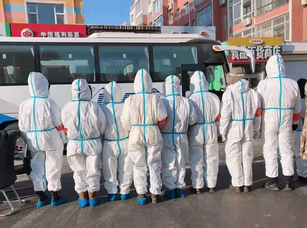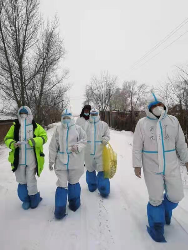 陶家屯镇(2次)的核酸检测工作,从早晨7点多进入村屯一直工作到下午3点多才吃午饭。身着防护服,不能喝水,不能上厕所,这是所有志愿者潜意识里对自己提出的要求。腊月里的天气寒风刺骨,面罩结冰,志愿者们不惧寒冷、不惧危险依然坚持完成使命。陶家屯镇临近范家屯,密接人员可能会较多,队友们都很害怕,但是没有人退缩。他们心往一处想,劲儿往一处使,挨家挨户登记检测,做到不漏一户,不漏一人,让疫情防控工作做得更加精准到位。