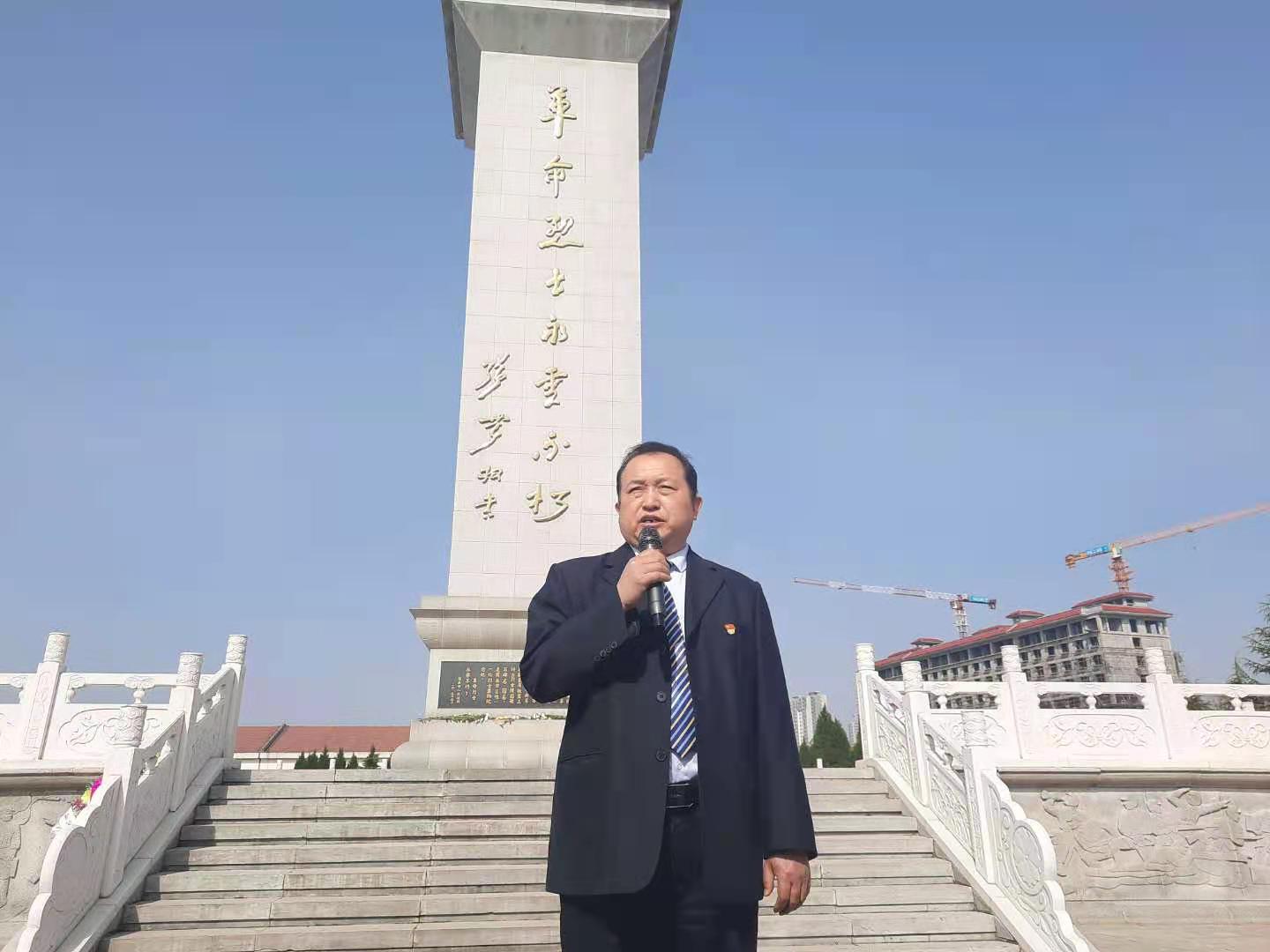 他们是摧毁旧世界最坚强、最勇敢的战士,是建设新中国最无私、最崇高的英灵,他们的英名与山川同在,与日月同辉。黄述学强调,作为一名党员,要不忘英烈遗志,时刻牢记党的宗旨,切实履行自己的职责,时刻用党员标准对照自己、检查自己、修正自己、提高自己,诚实做人,扎实做事,以共产党人的浩然正气为党旗添辉。 ![]() 校长黄述学讲话 活动最后,商丘市实验中学的党员们瞻仰了革命烈士纪念碑,凭吊了革命烈士墓,参观了革命烈士事迹展。(文、图 李双军 秦玉良) |