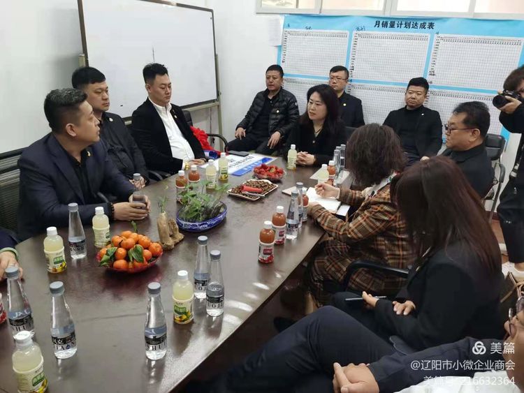 到达辽宁玉龙饮品有限公司后,会长与副会长企业进行了简短的会谈。期间马文莉副会长向大家介绍了公司发展经历和经营状况,并深感能够成为小微企业商会的一员感到荣幸和自豪。